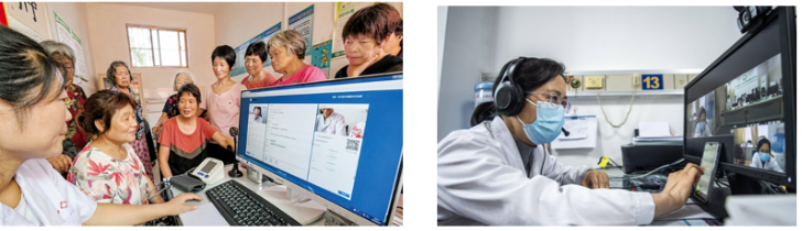 • 村淘远程医疗,使边远农村能通过手机 APP 或电脑WEB应用连接市区三甲医院线上实时视频看病诊疗
